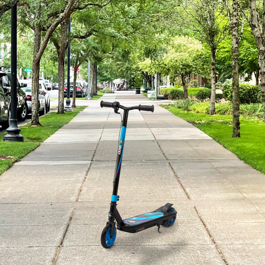 Let kids take the fun outside with the Skurry 12-Volt Electric Scooter, built for smooth, confident rides and everyday adventures. With speeds up to 8 mph and up to 40 minutes of ride time per charge, it delivers the perfect balance of excitement and control. A durable steel frame, high-torque motor, and smooth-rolling urethane wheels provide a stable, reliable ride kids can enjoy again and again. Designed specifically for kids ages 6–12, it’s easy to ride, easy to control, and made for neighborhood cruising.